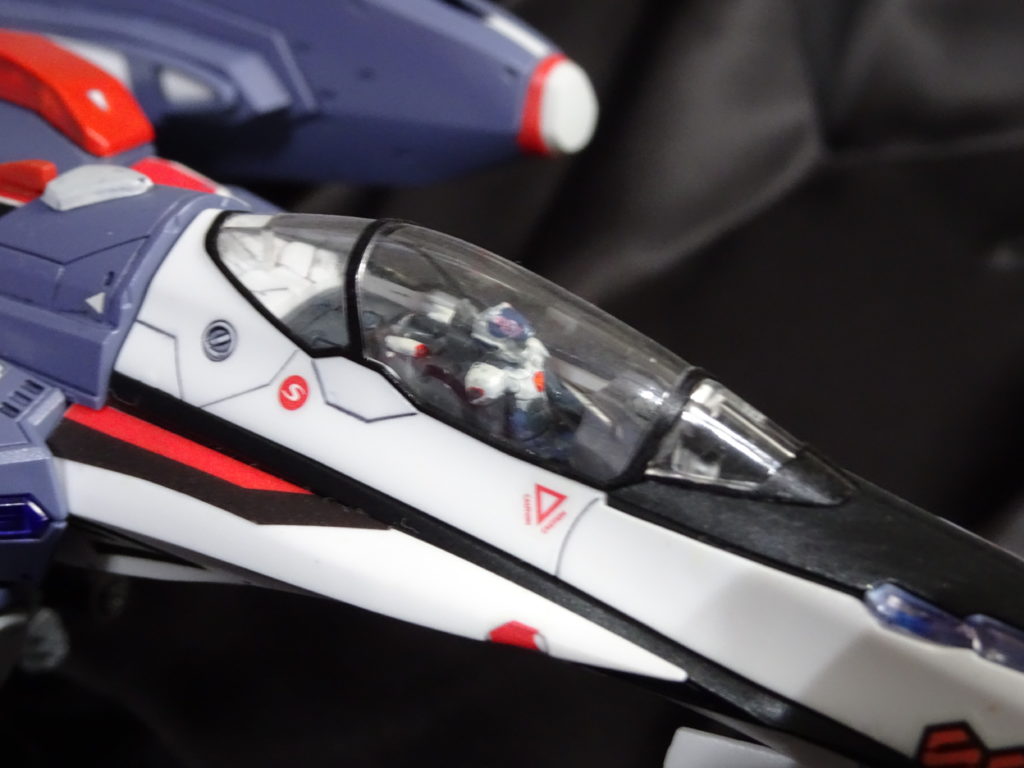 マクロスFから、VF-25Fメサイアです。スーパーパーツ装備型です。脱着での換装は不可能ですではありませんが、組み立てなおしになります。最新のVF-31でも専用組み換えになります。両方楽しみたい人は、大幅な改造をするか、2機もちするか。